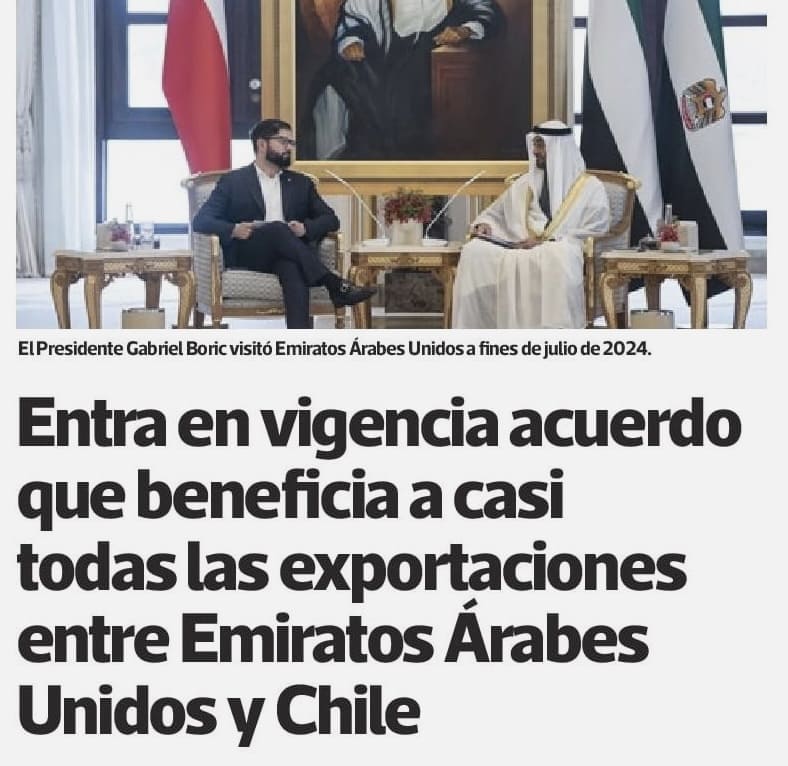 Entra en vigencia acuerdo que beneficia a casi todas las exportaciones entre Emiratos Árabes Unidos y Chile