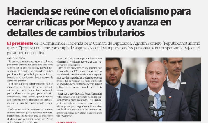 Hacienda se reúne con el oficialismo para cerrar críticas por Mepco y avanza en detalles de cambios tributarios