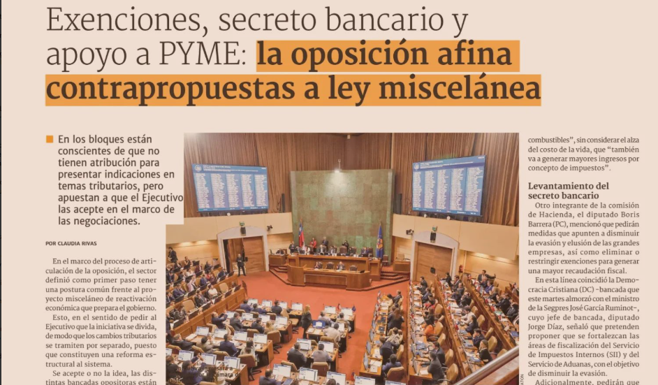Exenciones, secreto bancario y apoyo a PYME: la oposición afina contrapropuestas a ley miscelánea