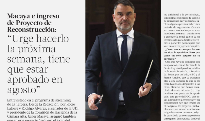 Macaya e ingreso de Proyecto de Reconstrucción: “Urge hacerlo la próxima semana, tiene que estar aprobado en agosto”