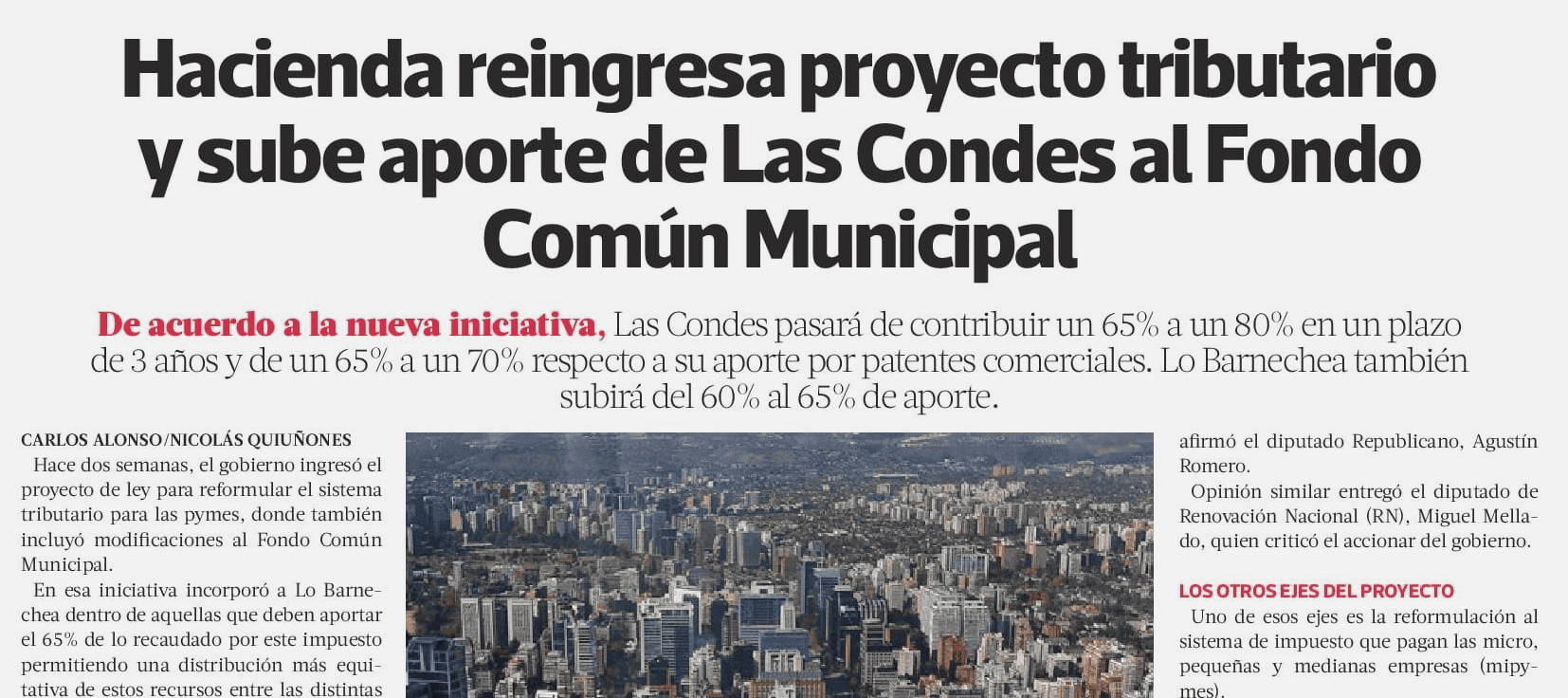 Reforma tributaria: Hacienda corrige error parcialmente, y Las Condes critica mayor aporte al Fondo Municipal