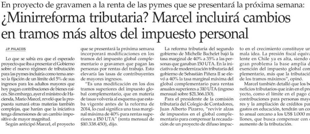 ¿Minirreforma tributaria? Marcel incluirá cambios en tramos más altos del impuesto personal