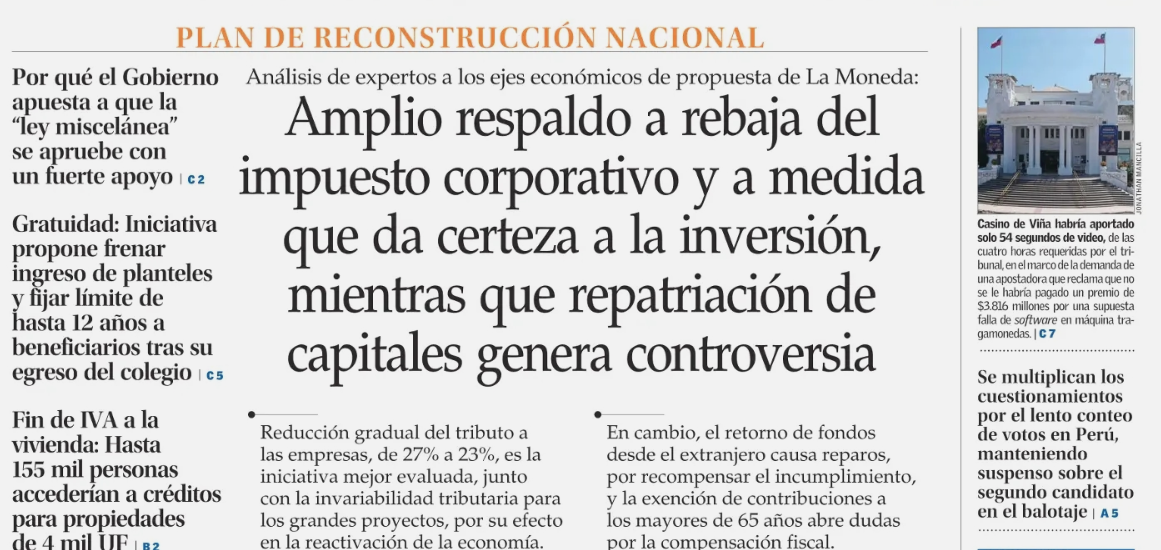 Gobierno plantea rebaja tributaria a pymes y grandes empresas, recursos para proteger empleo, menor costo a viviendas y contención del gasto fiscal
