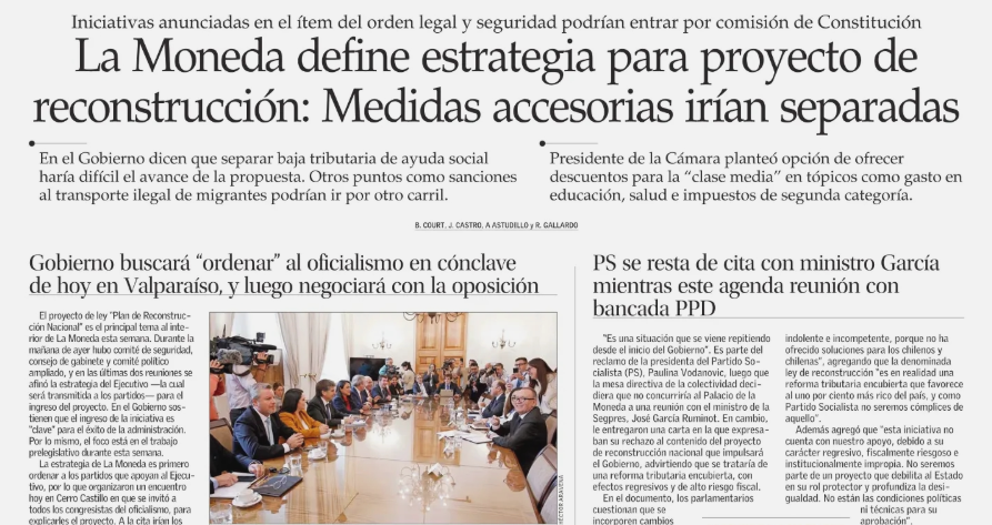 La Moneda define estrategia para proyecto de reconstrucción: Medidas accesorias irían separadas