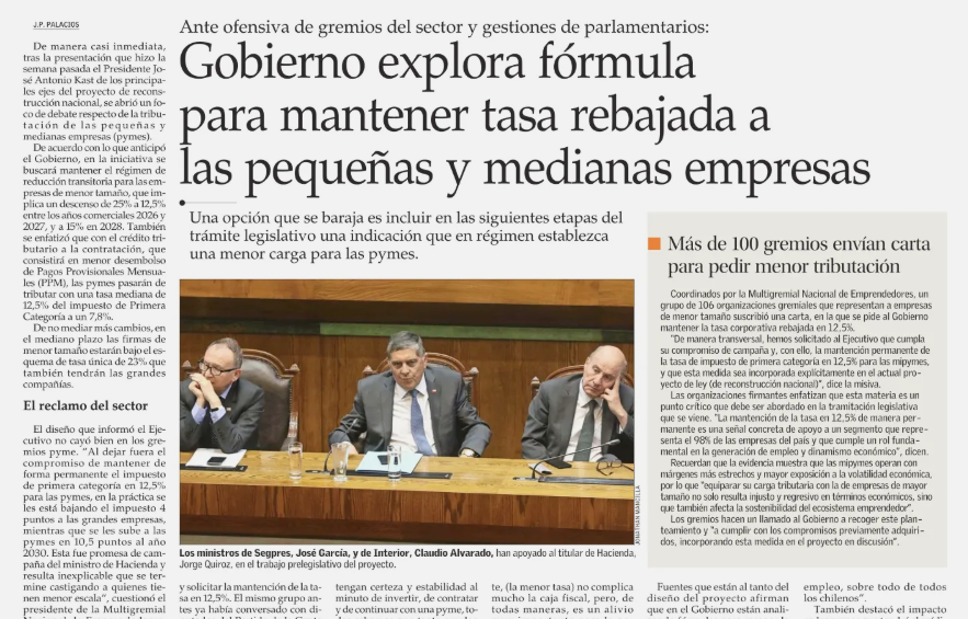 Gremios del mundo PYME se dividen ante proyecto de Kast y la Multigremial arremete por advierte inminente alza de impuestos al sector desde 2028