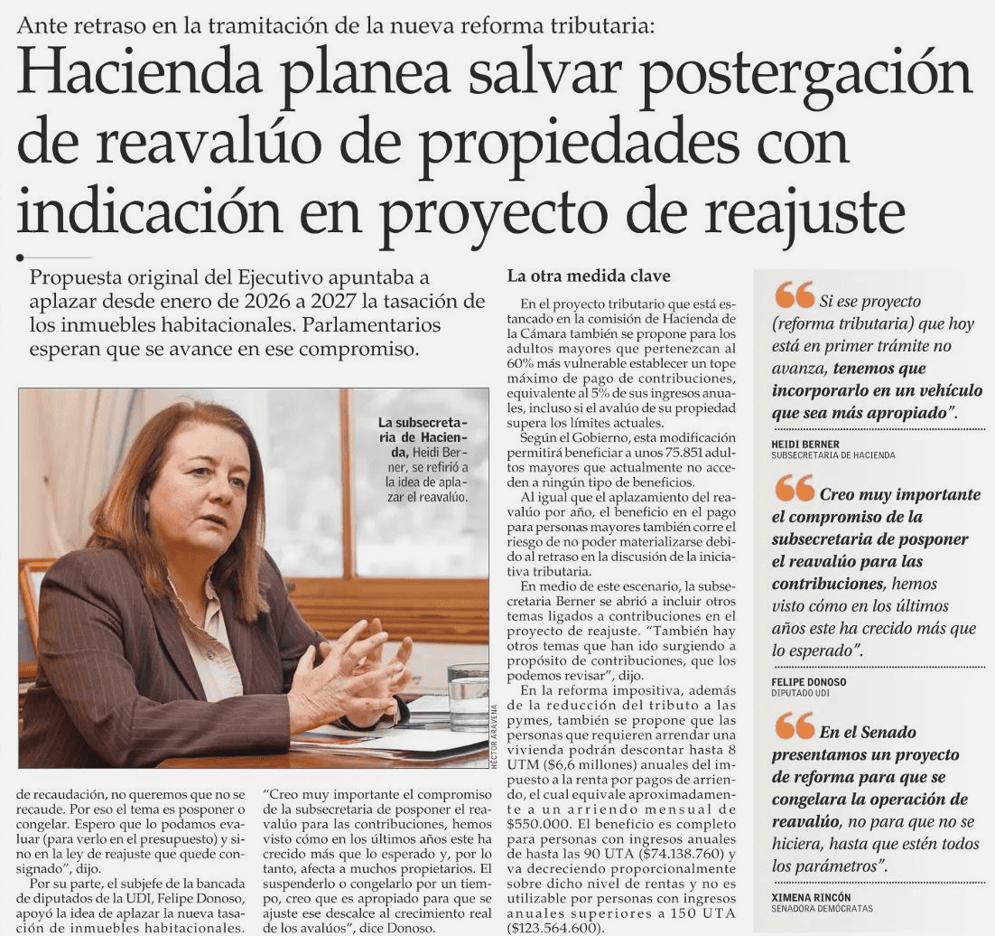 Hacienda planea salvar postergación de reavalúo de propiedades con indicación en proyecto de reajuste