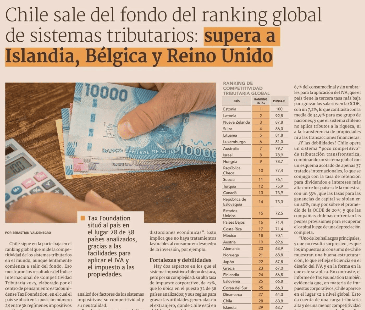 Chile sale del fondo del ranking global de sistemas tributarios: supera a Islandia, Bélgica y Reino Unido