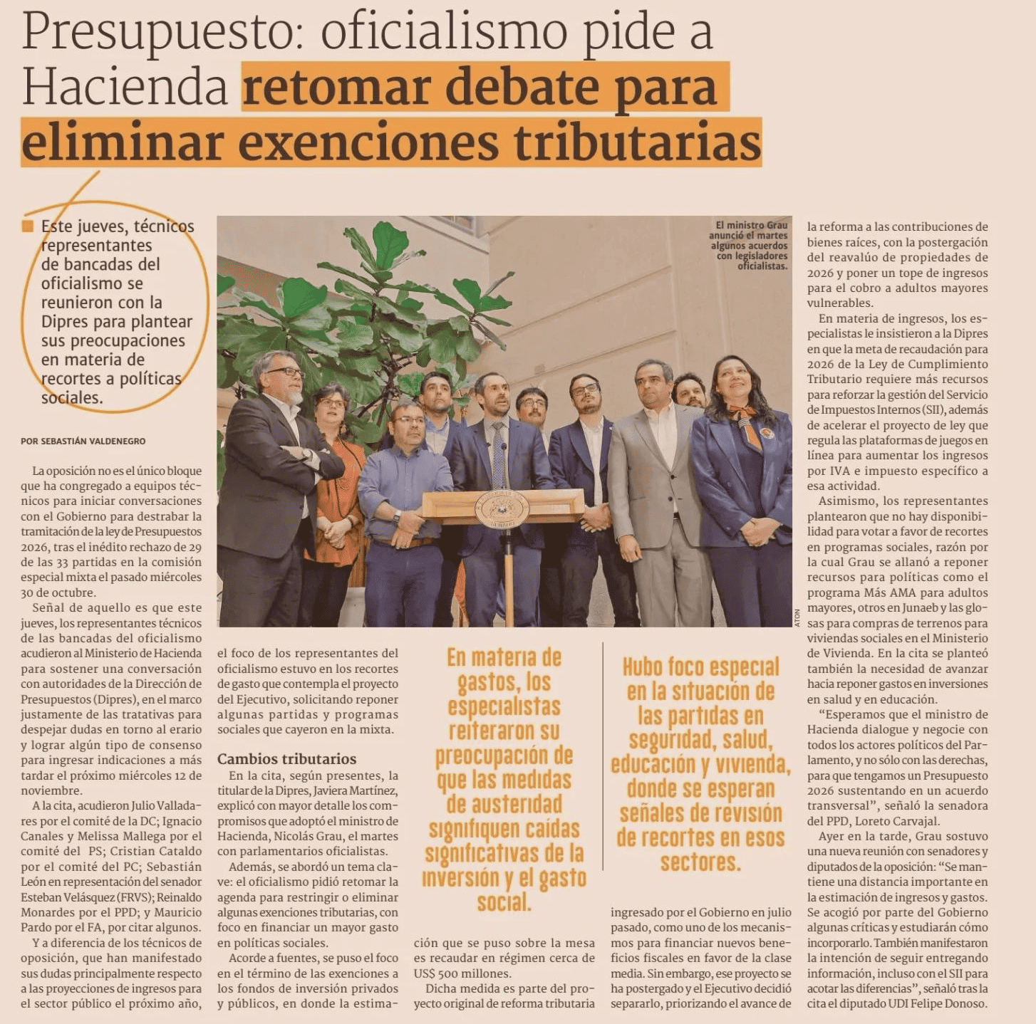 Presupuesto: oficialismo pide a Hacienda retomar debate para eliminar exenciones tributarias