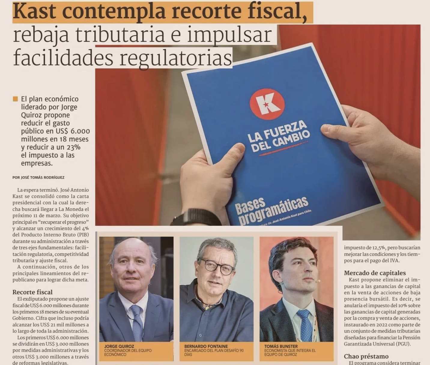 Kast contempla recorte fiscal, rebaja tributaria e impulsar facilidades regulatorias