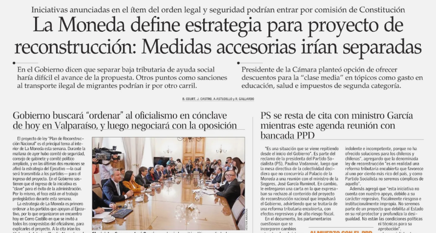 La Moneda define estrategia para proyecto de reconstrucción: Medidas accesorias irían separadas