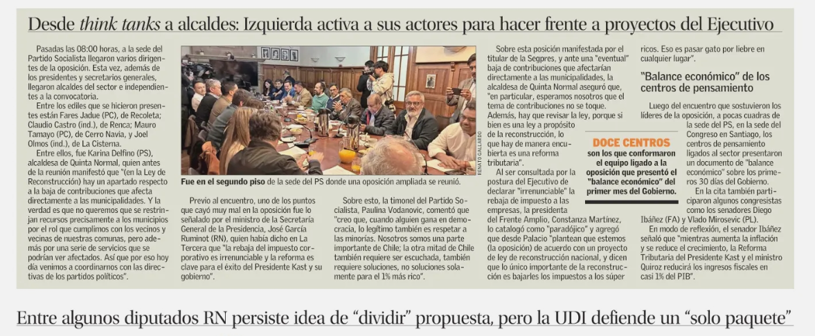 Desde think tanks a alcaldes: Izquierda activa a sus actores para hacer frente a proyectos del Ejecutivo