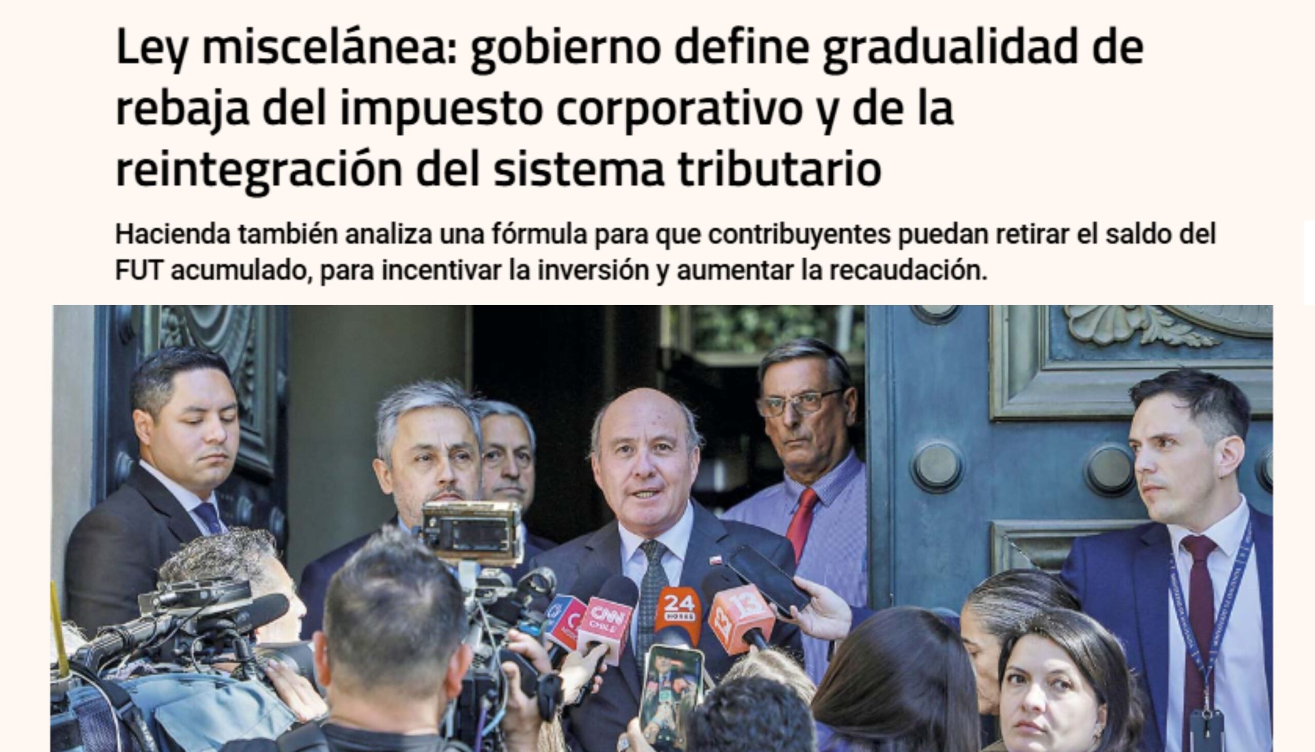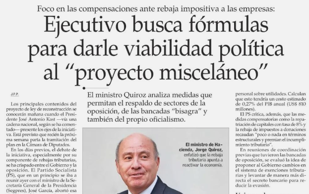 Ley miscelánea: Gobierno define gradualidad de rebaja del impuesto corporativo y de la reintegración del sistema tributario