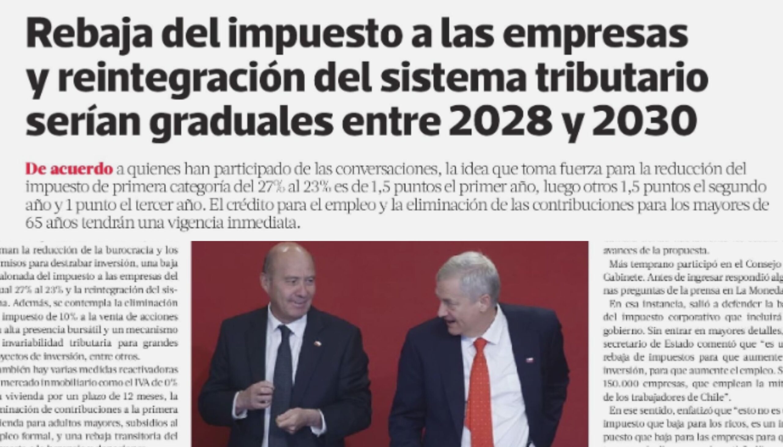 Rebaja del impuesto a las empresas y reintegración del sistema tributario serían graduales entre 2028 y 2030