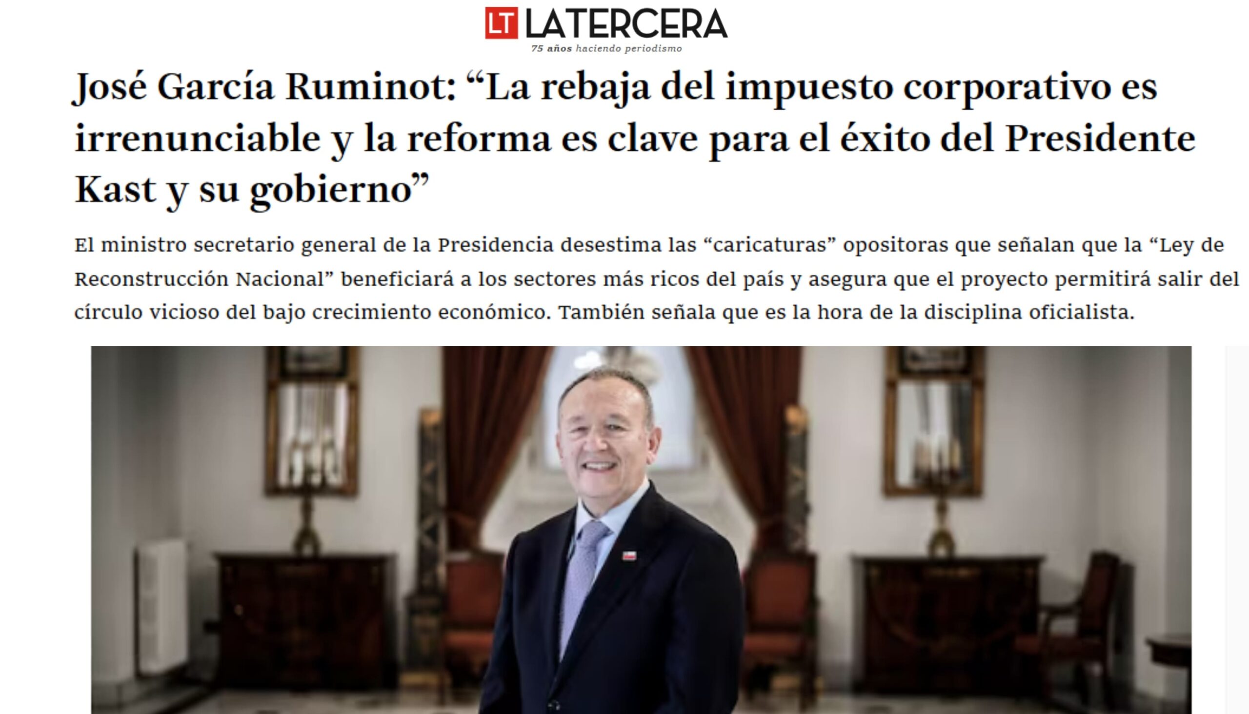 José García Ruminot: “La rebaja del impuesto corporativo es irrenunciable y la reforma es clave para el éxito del Presidente Kast y su gobierno”