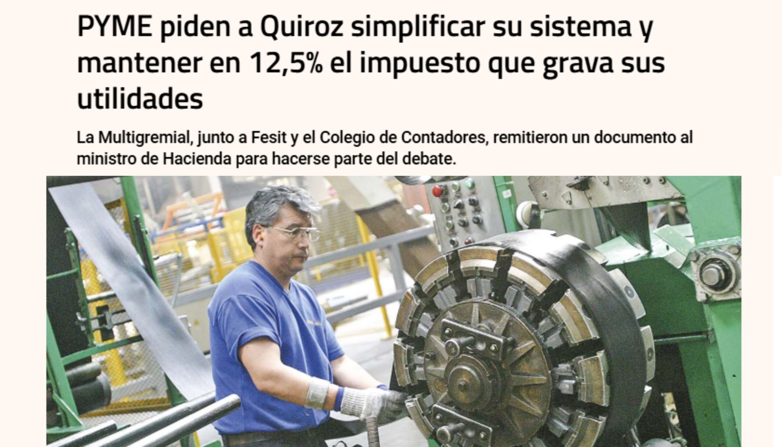 PYME piden a Quiroz simplificar su sistema y mantener en 12,5% el impuesto que grava sus utilidades
