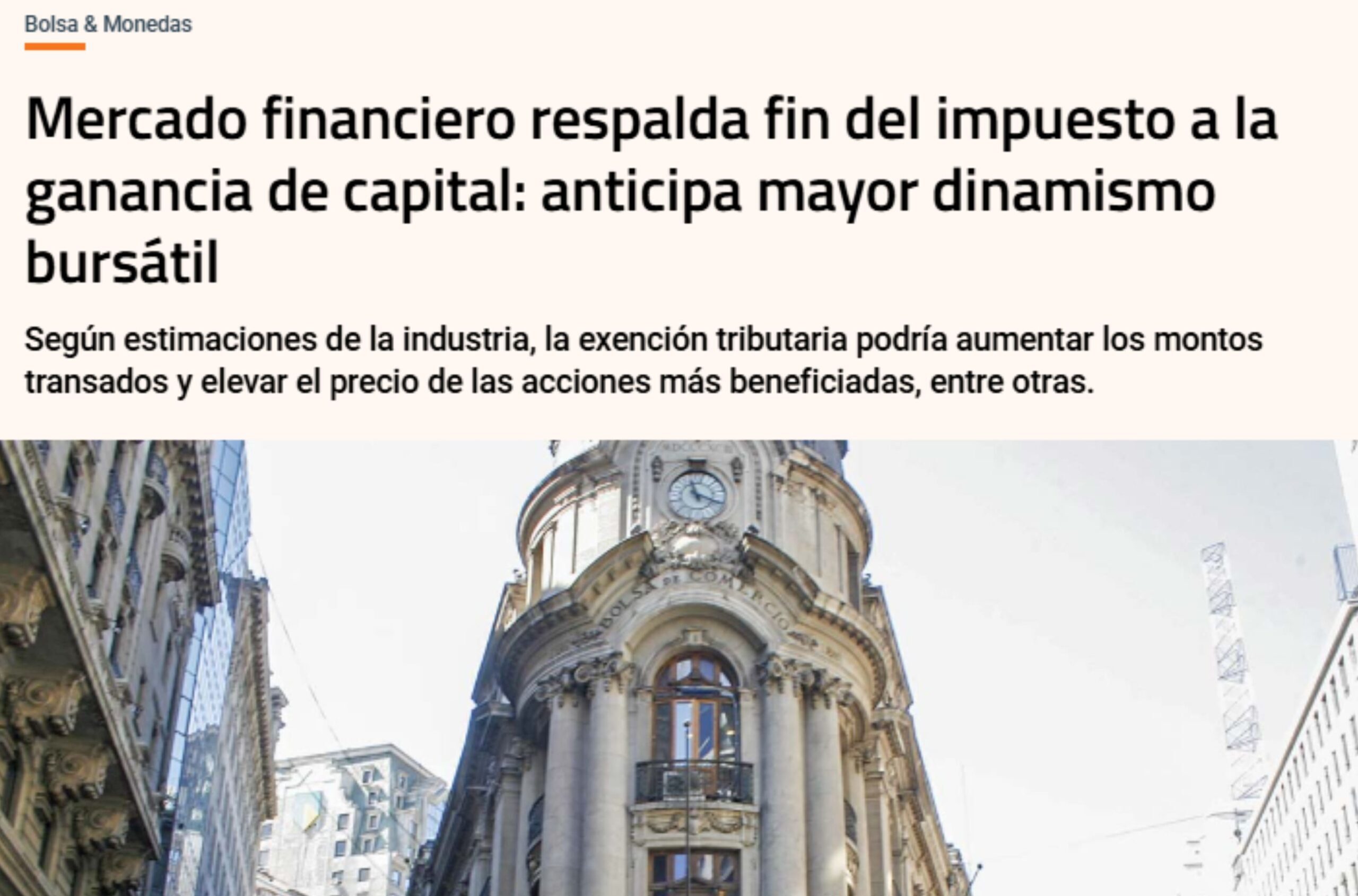 Mercado financiero respalda fin del impuesto a la ganancia de capital: anticipa mayor dinamismo bursátil