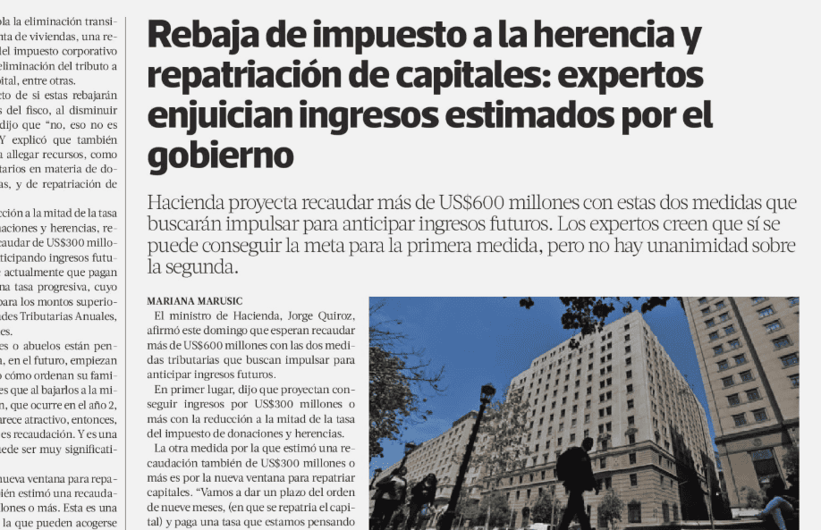 Rebaja de impuesto a la herencia y repatriación de capitales: expertos enjuician ingresos estimados por el gobierno