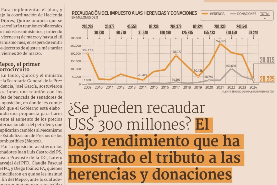 ¿Se pueden recaudar US$ 300 millones? El bajo rendimiento que ha mostrado el tributo a las herencias y donaciones
