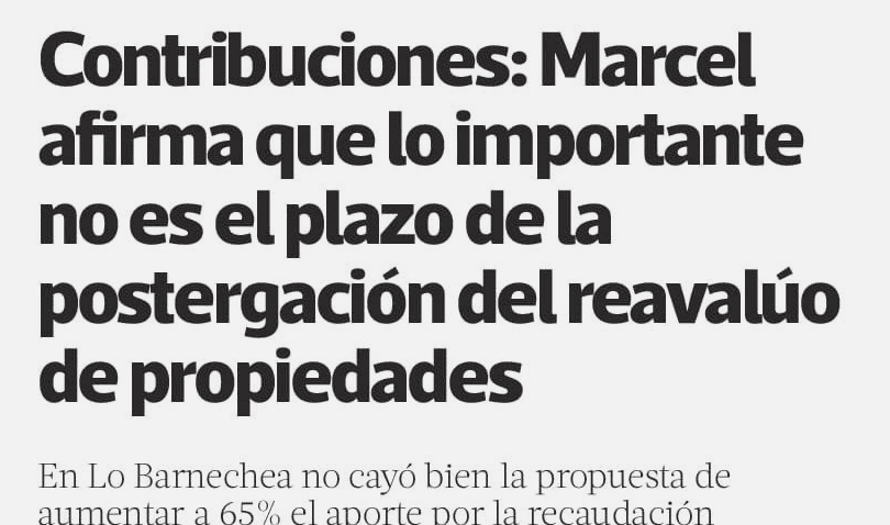 Contribuciones: Marcel afirma que lo importante no es el plazo de la postergación del reavalúo de propiedades