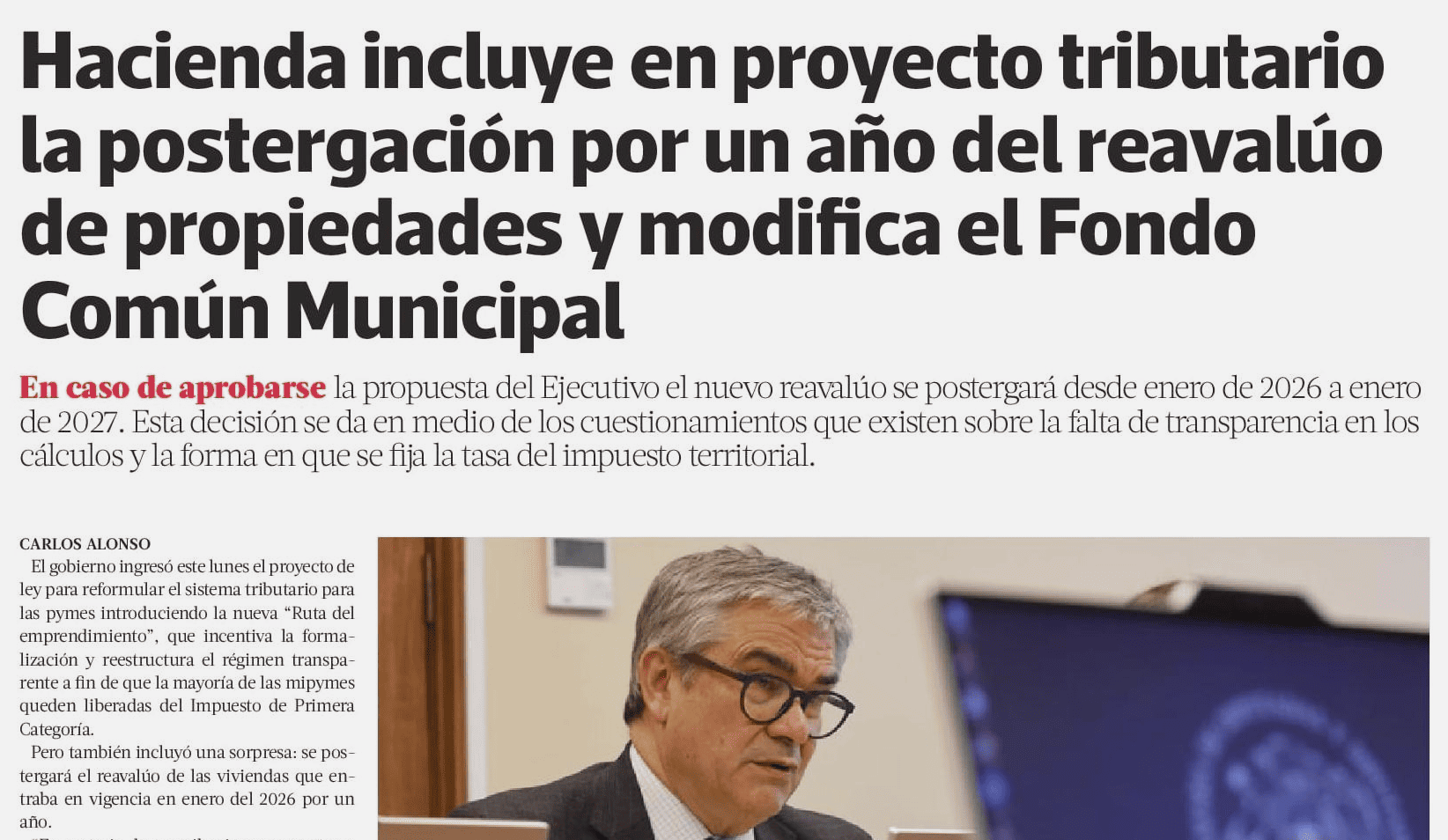 Reforma tributaria de Hacienda incluye postergar en un año el reavalúo de propiedades